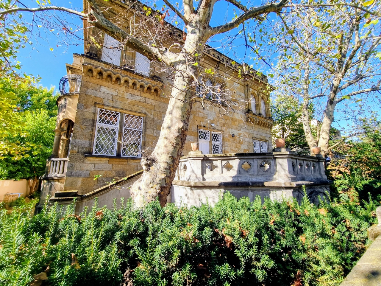 Az 1918- ban épült villa historizáló - eklektikus stílusban épült, az építész annak idején a házat saját magának tervezte, napjainkban folyamatosan karbantartott, állapot megőrzése, illetve javítása érdekében a társasház folyamatosan törődik vele, pályázatokon indul! Eladó ingatlanunk a magasföldszinti szinten helyezkedik el, (alaprajzon a lilával körbejelölt) egyik különlegessége, hogy a házba egy tekintélyes 33 nm-es külső teraszról jutunk be, majd a lakást egy zárt lépcsőházból közelíthetjük meg, ami a szomszéd ingatlannal kizárólagos használatban van.